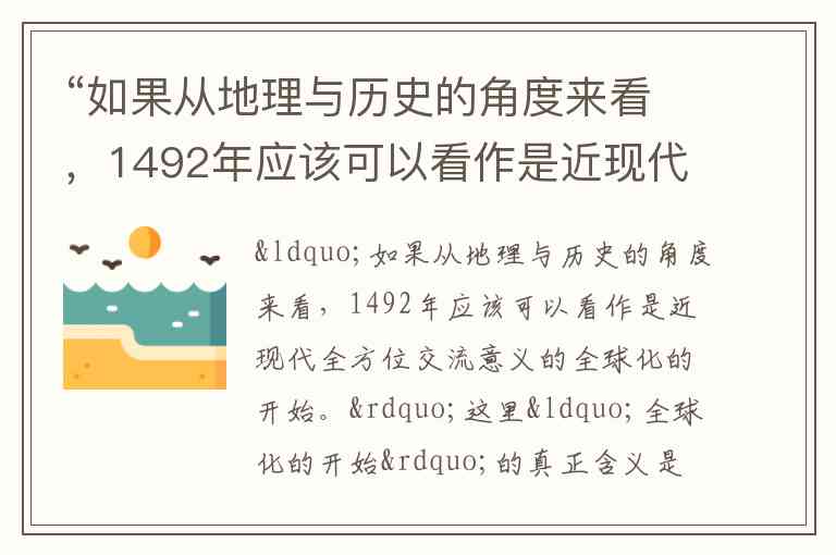 题干说:从地理与历史角度看,1492年(哥伦布到达美洲)可以看作是近现代全方位交流意义的“全球化的开始”。