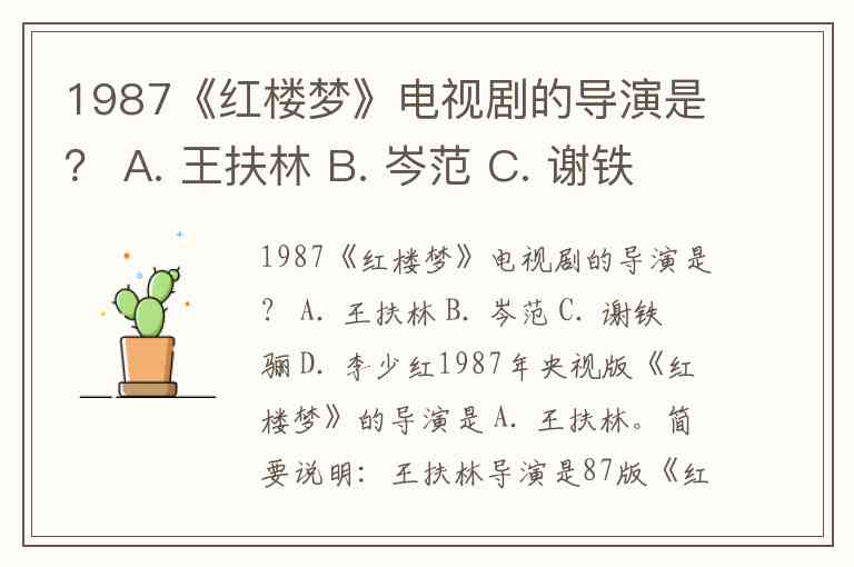 1987《红楼梦》电视剧的导演是? A. 王扶林 B. 岑范 C. 谢铁骊 D. 李少红