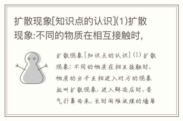 扩散现象是指 不同物质的分子在相互接触时彼此进入对方的现象,它是分子永不停息的无规则运动的直接证据。