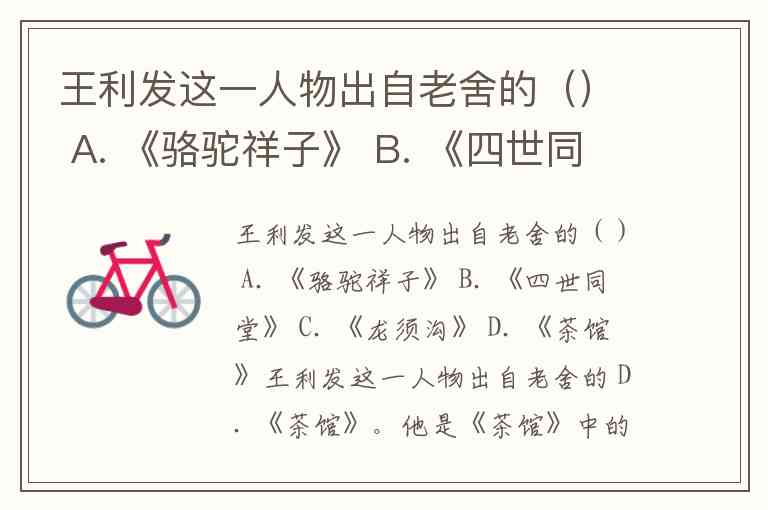 王利发这一人物出自老舍的() A. 《骆驼祥子》 B. 《四世同堂》 C. 《龙须沟》 D. 《茶馆》