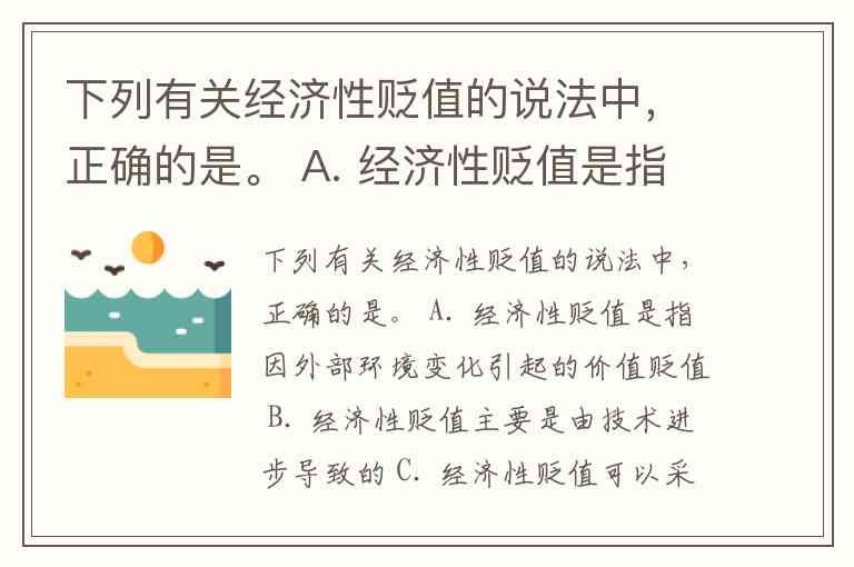 B 错误:经济性贬值主要由外部环境变化引起,而非技术进步;技术进步通常导致的是功能性贬值。