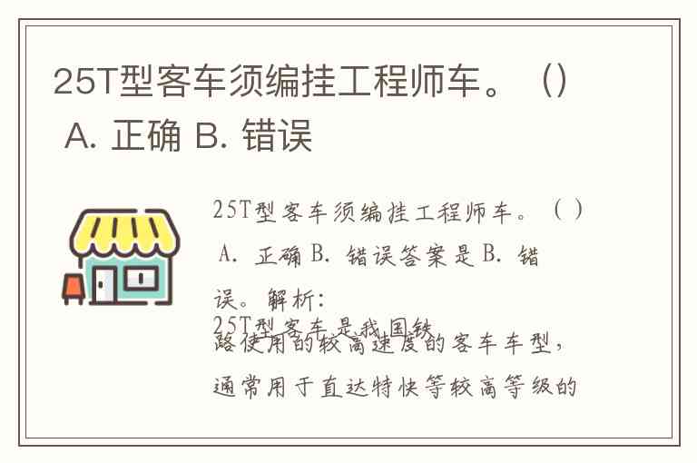 解析:25T型客车是我国铁路使用的较高速度的客车车型,通常用于直达特快等较高等级的旅客列车。其编组要求中,并没有强制性规定“必须”编挂工程师车(又称试验车、检测车等)。工程师车一般是在特定检测任务、试验运行或工程维护时根据需求编挂,并非固定编组要求。