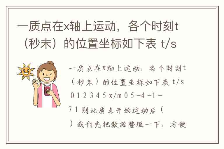 一质点在x轴上运动,各个时刻t(秒末)的位置坐标如下表 t/s 0 1 2 3 4 5 x/m 0 5 -4 -1 -7 1 则此质点开始运动后( )