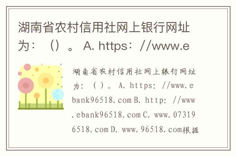 湖南省农村信用社网上银行网址为:()。 A. https://www.ebank96518.com B. http://www.ebank96518.com C. www.073196518.com D. www.96518.com