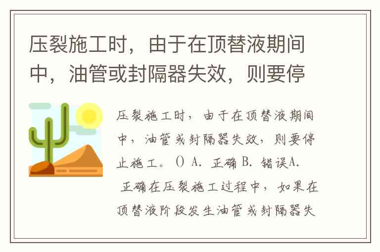 压裂施工时,由于在顶替液期间中,油管或封隔器失效,则要停止施工。() A. 正确 B. 错误