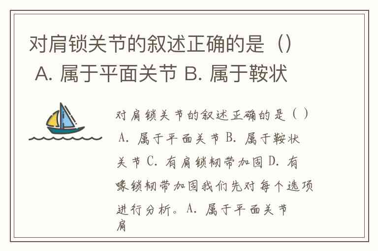 对肩锁关节的叙述正确的是() A. 属于平面关节 B. 属于鞍状关节 C. 有肩锁韧带加固 D. 有喙锁韧带加固
