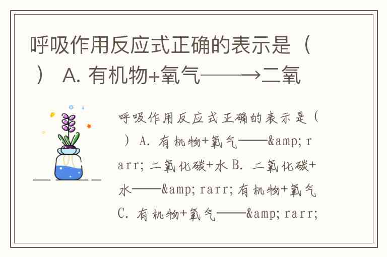呼吸作用反应式正确的表示是( ) A. 有机物+氧气──→二氧化碳+水 B. 二氧化碳+水──→有机物+氧气 C. 有机物+氧气──→二氧化碳+水+能量 D. 水+二氧化碳──→淀粉+氧气+能量