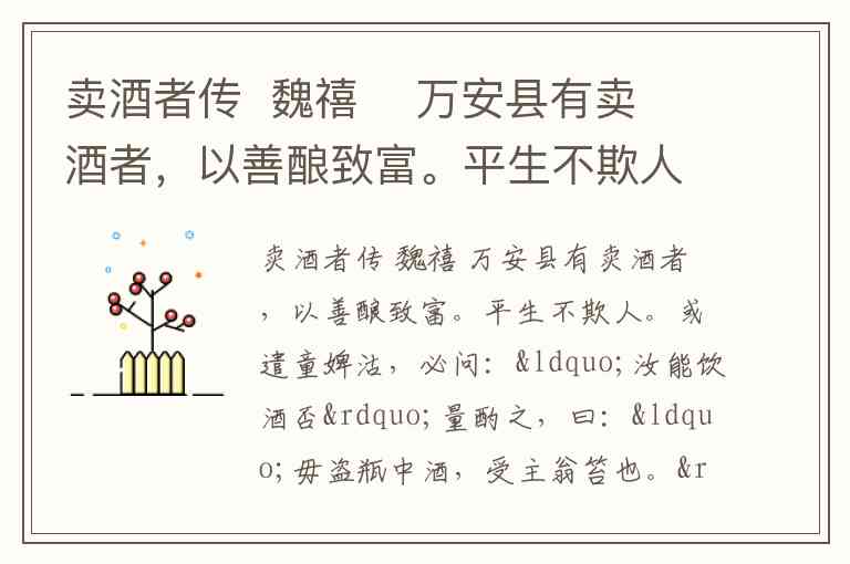 (2) 卖酒者不仅是有德行的人,而且是有智慧的人啊!