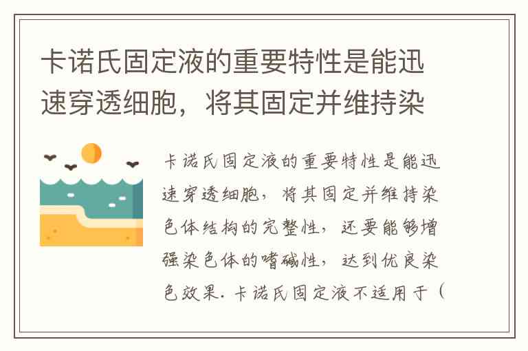 卡诺氏固定液能够迅速穿透细胞,固定并维持染色体结构的完整性;