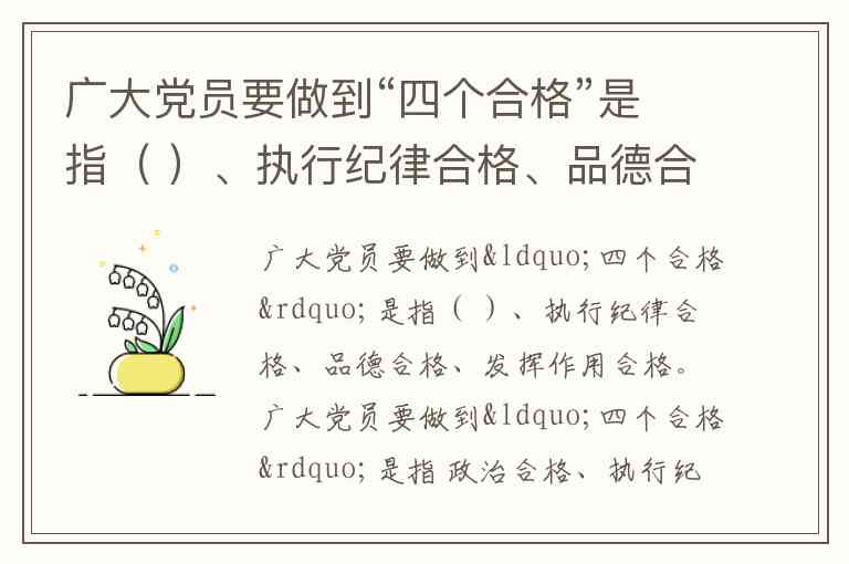 广大党员要做到“四个合格”是指 政治合格、执行纪律合格、品德合格、发挥作用合格。