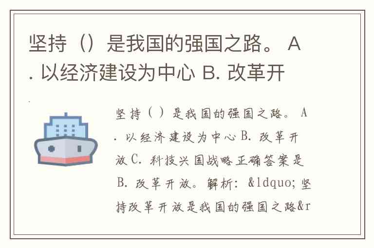坚持()是我国的强国之路。 A. 以经济建设为中心 B. 改革开放 C. 科技兴国战略