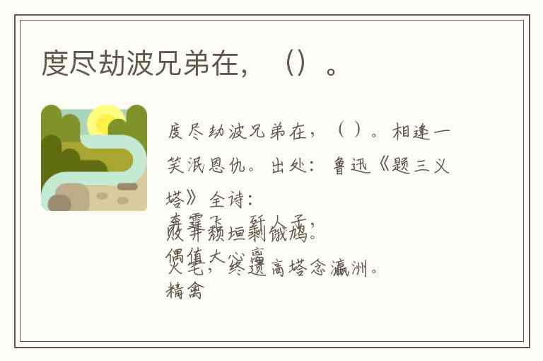 释义:“度尽劫波兄弟在,相逢一笑泯恩仇”意为:即使经历重重劫难,真正的兄弟情谊依然长存;当再次相逢时,只需相视一笑,便能将过往的恩怨悉数消融。这两句诗以宽广的胸怀超越了历史的伤痛,表达了中华民族对和平、和解的深切向往,常被用于寄托海峡两岸乃至全人类化解仇恨、共创未来的美好愿景。