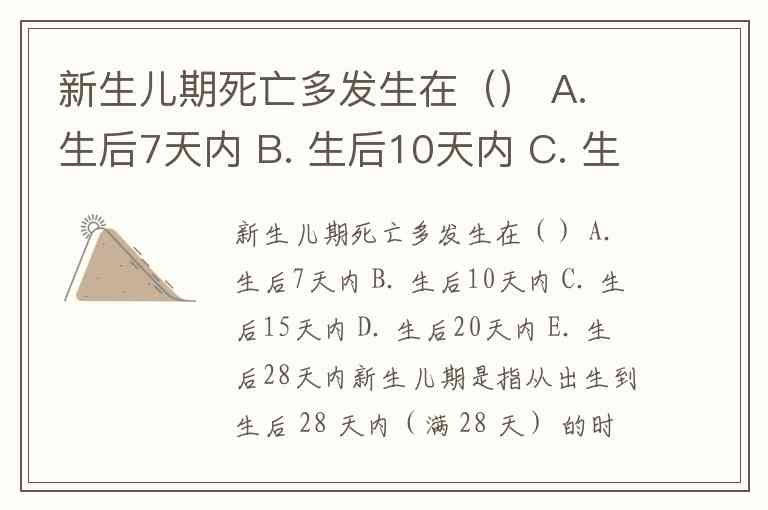 新生儿期死亡多发生在() A. 生后7天内 B. 生后10天内 C. 生后15天内 D. 生后20天内 E. 生后28天内