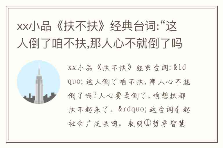 题干的材料围绕“扶不扶”引发的关于道德与社会风气的讨论,核心台词强调的是道德人心对社会的重要性。