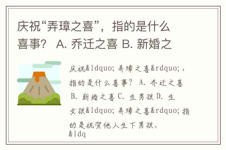 庆祝“弄璋之喜”,指的是什么喜事? A. 乔迁之喜 B. 新婚之喜 C. 生男孩 D. 生女孩
