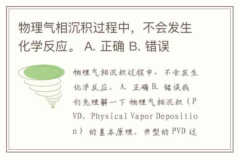 物理气相沉积过程中,不会发生化学反应。 A. 正确 B. 错误