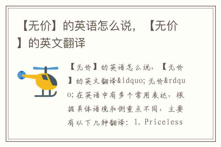 “无价”在英语中有多个常用表达,根据具体语境和侧重点不同,主要有以下几种翻译: