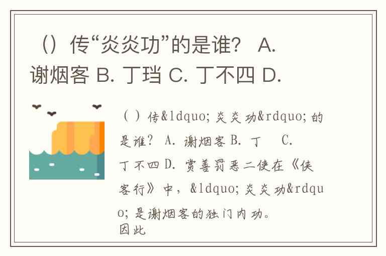 ()传“炎炎功”的是谁? A. 谢烟客 B. 丁珰 C. 丁不四 D. 赏善罚恶二使