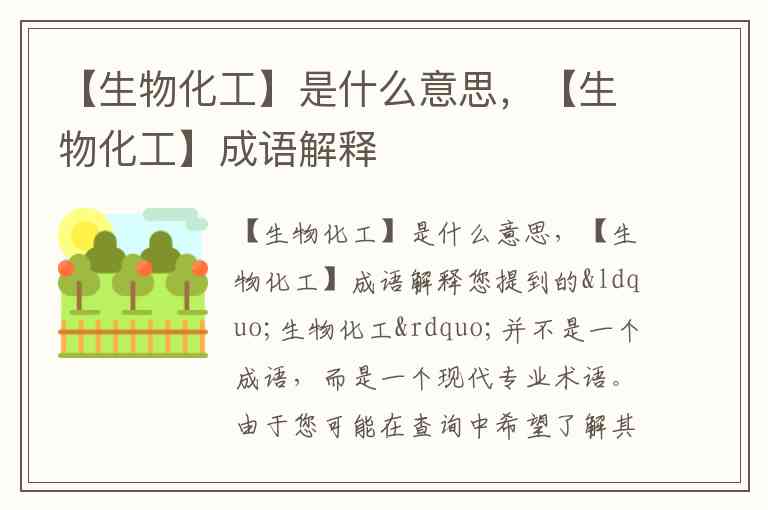 您提到的“生物化工”并不是一个成语,而是一个现代专业术语。由于您可能在查询中希望了解其含义,我将分别进行说明: