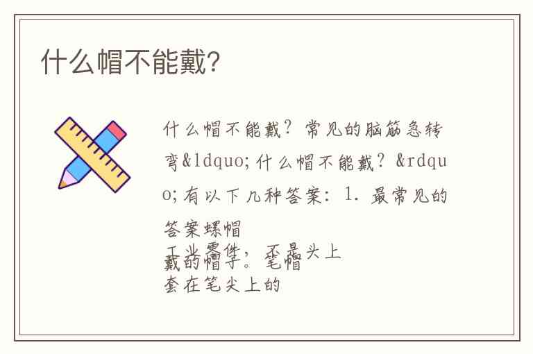 常见的脑筋急转弯“什么帽不能戴?”有以下几种答案: