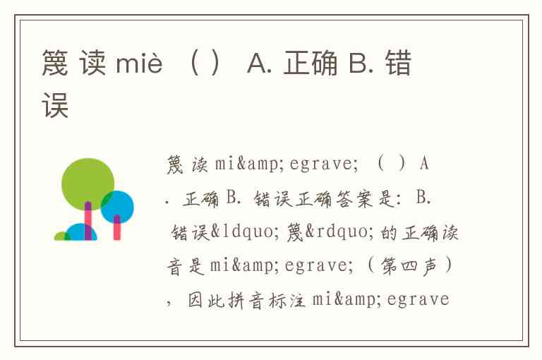 而这里你选项里写的是 B. 错误,但根据实际读音,miè 是正确的,所以答案应该是 A。