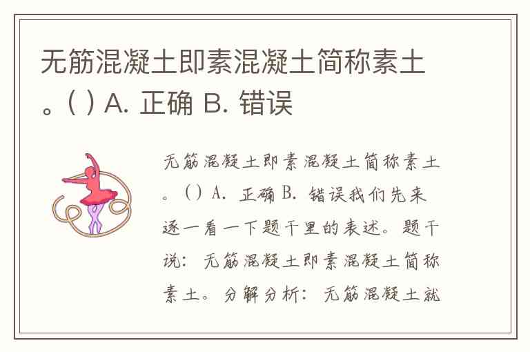 因此,“无筋混凝土即素混凝土简称素土”这一整个判断是错误的。