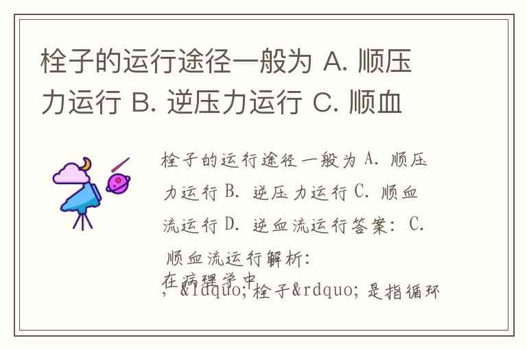 栓子的运行途径一般为 A. 顺压力运行 B. 逆压力运行 C. 顺血流运行 D. 逆血流运行