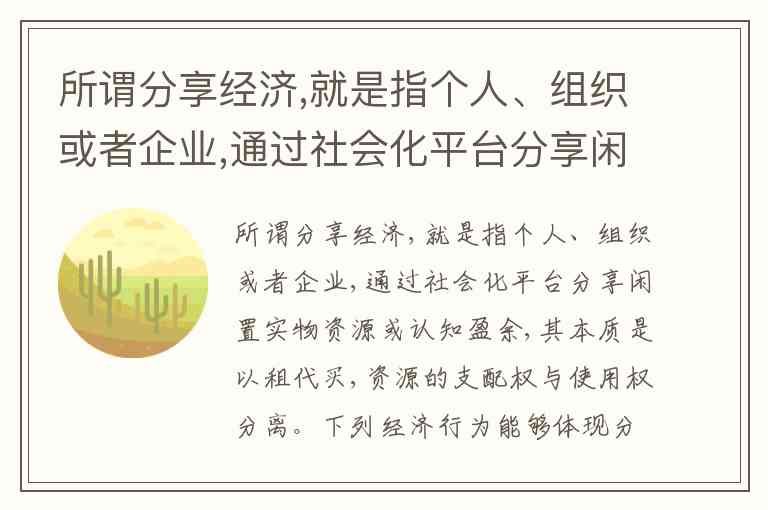 可是选择题必须选一项,可能他们出题时默认赠送闲置也算分享经济的一种形式(但这样与定义里的“以租代买”冲突)。