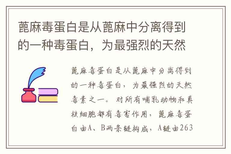 蓖麻毒蛋白是一种毒蛋白,由 A、B 两条肽链组成。