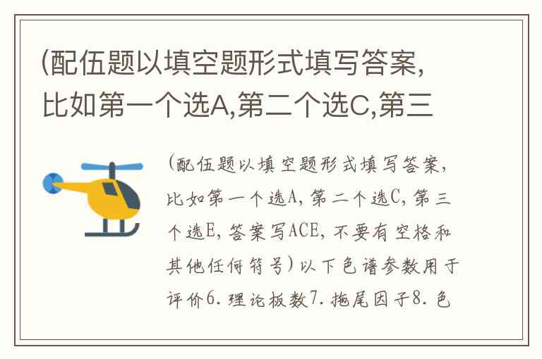(配伍题以填空题形式填写答案,比如第一个选A,第二个选C,第三个选E,答案写ACE,不要有空格和其他任何符号)以下色谱参数用于评价6.理论板数7.拖尾因子8.色谱峰面积或峰面积比值的 RSD A. 色谱柱的效能 B. 色谱系统的重现性 C. 色谱峰的对称性 D. 方法的灵敏度 E. 方法的准确度