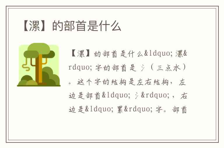 在《康熙字典》及现代汉字部首归类中,“漯”字均归属于“水部”(即三点水部首)。
