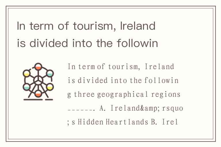 In term of tourism, Ireland is divided into the following three geographical regions______. A. Ireland’s Hidden Heartlands B. Ireland’ Capital District C. The Wild Atlantic Way D. Ireland’s Ancient East