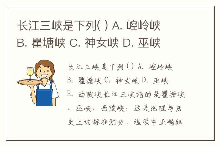 长江三峡指的是瞿塘峡、巫峡、西陵峡,这是地理与历史上的标准划分。