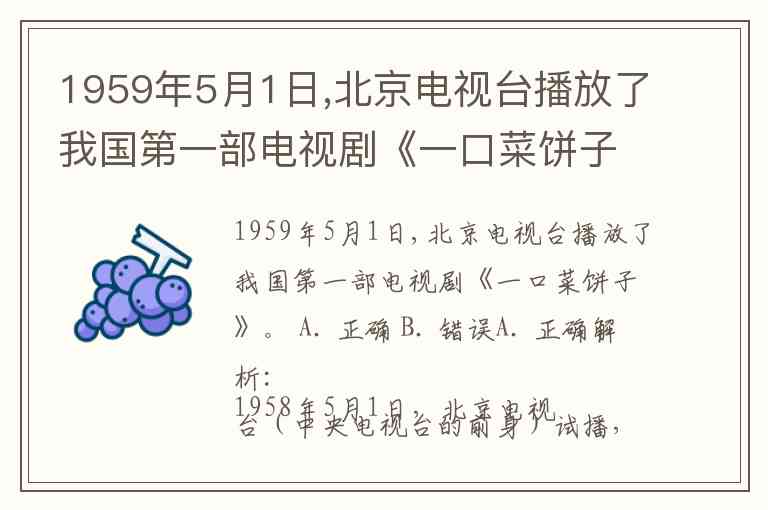 解析:1958年5月1日,北京电视台(中央电视台的前身)试播,并于同年6月15日播出了我国第一部电视剧《一口菜饼子》。题干中的“1959年5月1日”时间有误,正确播出年份应为1958年。