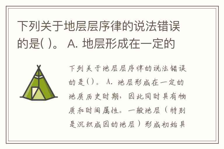 下列关于地层层序律的说法错误的是( )。 A. 地层形成在一定的地质历史时期,因此同时具有物质和时间属性。一般地层(特别是沉积成因的地层)形成初始具有水平或近于水平的产状 B. 物质是一层层堆积形成的,总是新的在下,老的在上 C. 构造作用可以使得地层发生褶皱弯曲,甚至倒转,从而使原始新老地层的空间位置发生变化 D. 对于地质构造复杂的区域要先恢复原始地层的上下关系才能断定其年代上的早晚