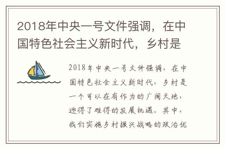 2018年中央一号文件明确指出,实施乡村振兴战略的根本政治优势是 坚持和加强党的全面领导,即“中国的领导”(特指中国共产党领导)。文件强调,党的领导是中国特色社会主义最本质的特征,也是乡村振兴战略顺利实施的根本政治保障。