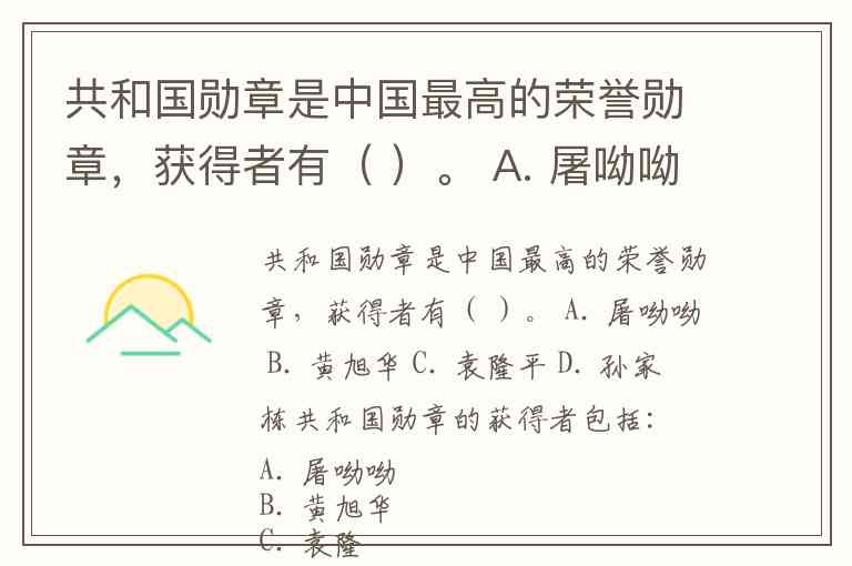 共和国勋章的获得者包括:A. 屠呦呦B. 黄旭华C. 袁隆平D. 孙家栋
