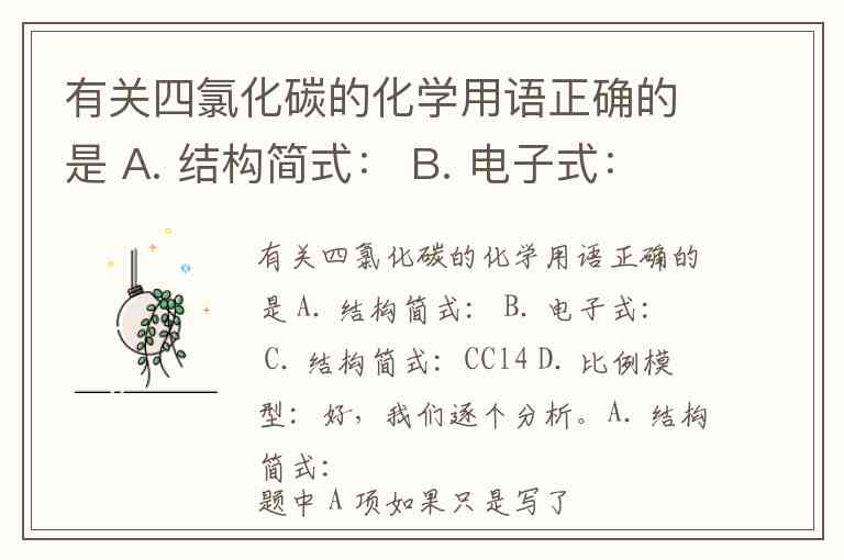 题中 A 项如果只是写了“结构简式:”后面没有内容,那是出题排版的缺失,但假设这里指题干“有关四氯化碳的化学用语正确的是”之后 A 选项提供的写法是某个错误的表达,则需判断。