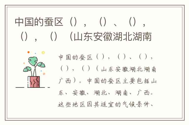 中国的蚕区(),()、(),(),()(山东安徽湖北湖南广西)。