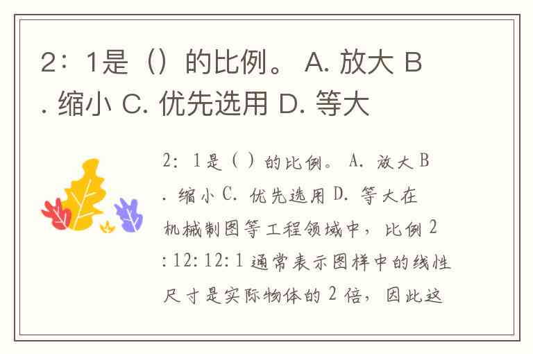 2:1是()的比例。 A. 放大 B. 缩小 C. 优先选用 D. 等大