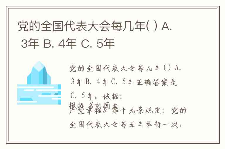 党的全国代表大会每几年( ) A. 3年 B. 4年 C. 5年