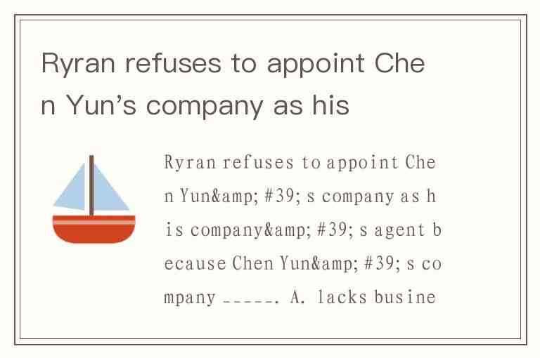The incomplete sentence suggests that Ryran is refusing to appoint Chen Yun's company as an agent. The most common and direct reason for such a refusal in a business context is when a potential agent cannot commit to or guarantee a certain level of sales.