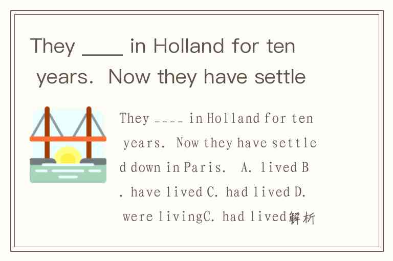 They ____ in Holland for ten years.Now they have settled down in Paris. A. lived B. have lived C. had lived D. were living