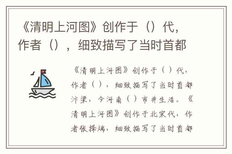 《清明上河图》创作于()代,作者(),细致描写了当时首都汴梁,今河南()市井生活。