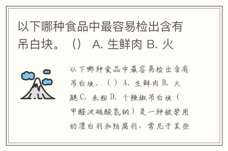 以下哪种食品中最容易检出含有吊白块。() A. 生鲜肉 B. 火腿 C. 米粉 D. 干辣椒