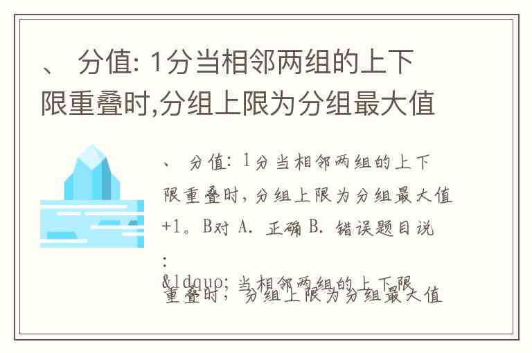 ——这意味着在处理重叠情况时(比如 10~20 和 20~30),为了统计方便,有人可能调整实际上限为分组最大值 +1(即 20 改为 20.0001 等)来实现计算机的明确分组,避免数据落在边界时重复计数。但这不是通用教材或通用统计中的标准定义,更确切说,标准做法是将实际上限定为分组最大值,但“上限不在内”原则下,数据归属下一组。