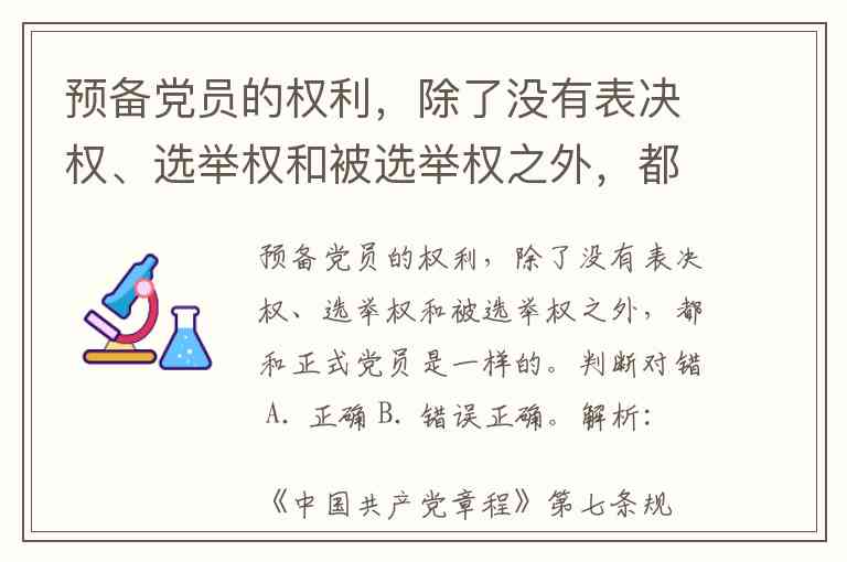 预备党员的权利,除了没有表决权、选举权和被选举权之外,都和正式党员是一样的。判断对错 A. 正确 B. 错误