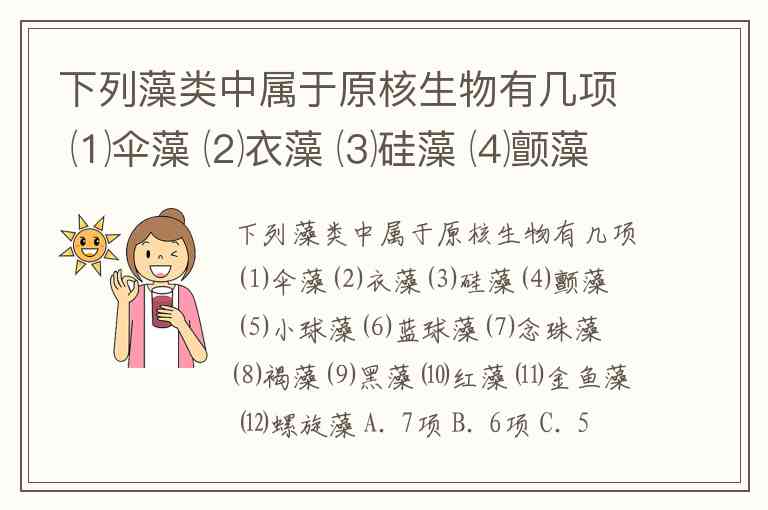 (12)螺旋藻(广义上指 Spirulina,属于蓝藻) → 原核