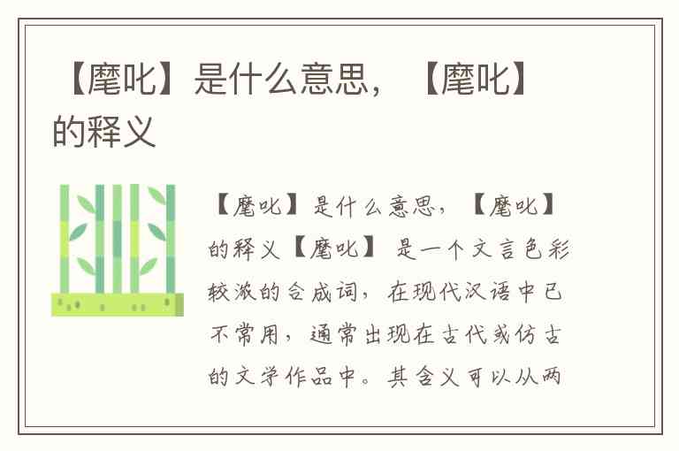 【麾叱】 是一个文言色彩较浓的合成词,在现代汉语中已不常用,通常出现在古代或仿古的文学作品中。其含义可以从两个字的本义来理解: