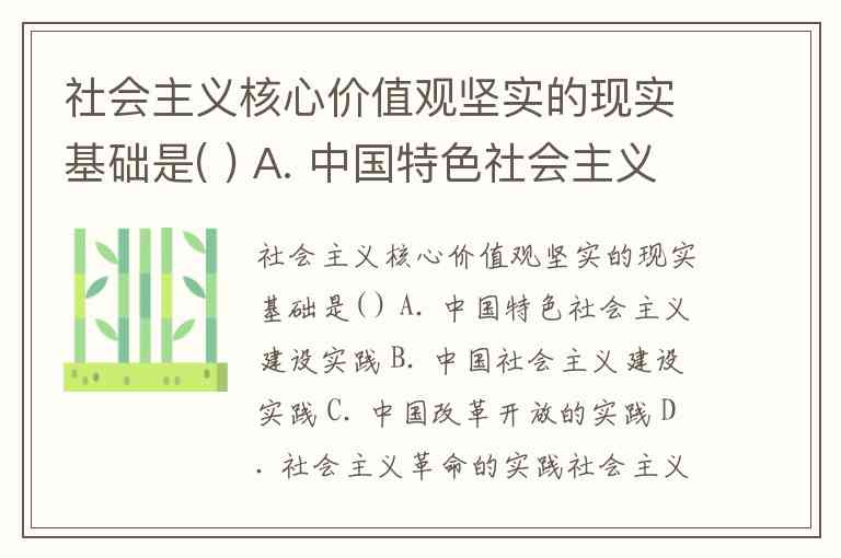 社会主义核心价值观坚实的现实基础是 A. 中国特色社会主义建设实践。